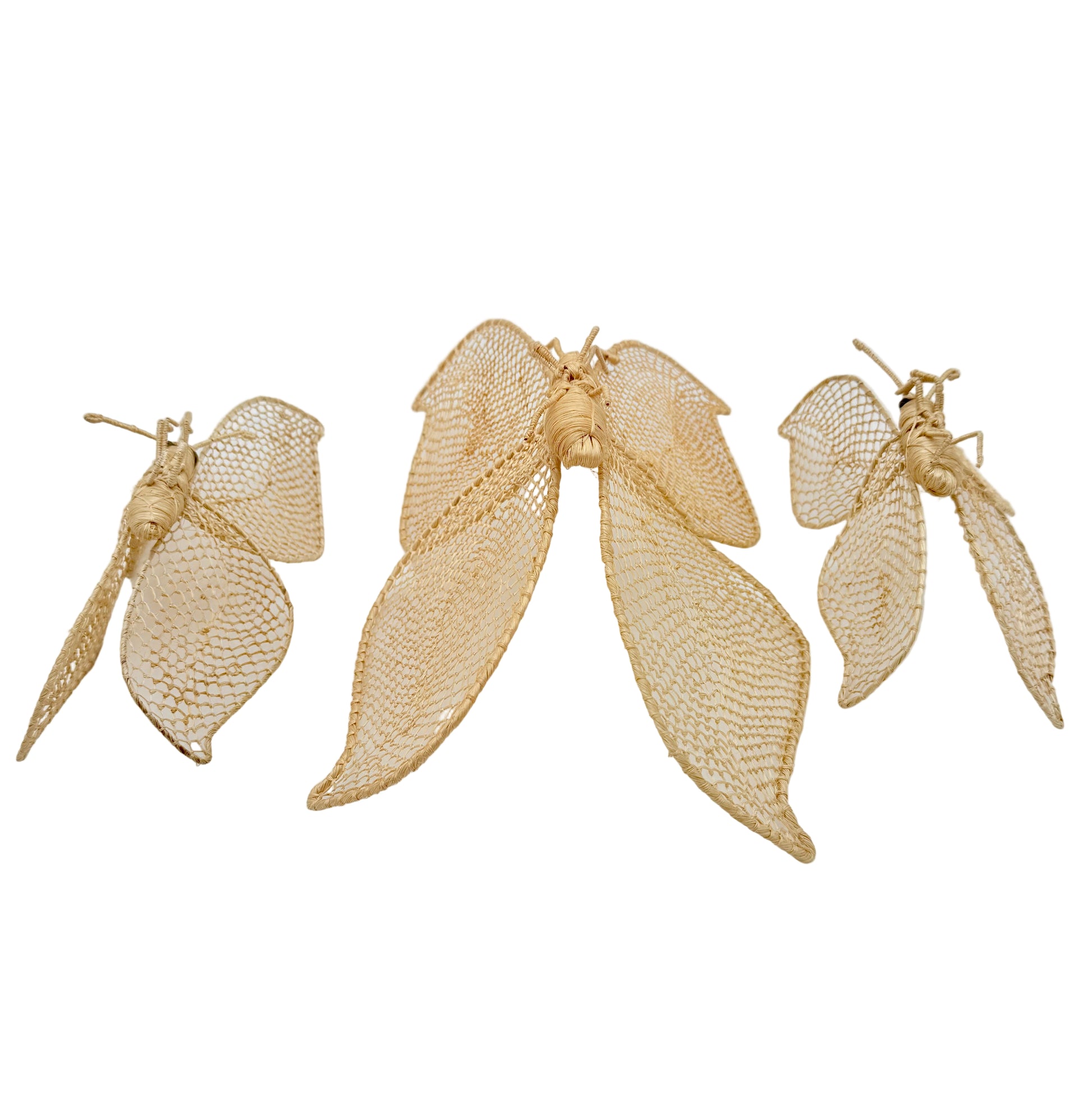 VINTAGE WICKER BUTTERFLY WALL ART – SET OF 3 HANDWOVEN RAFFIA BUTTERFLIES