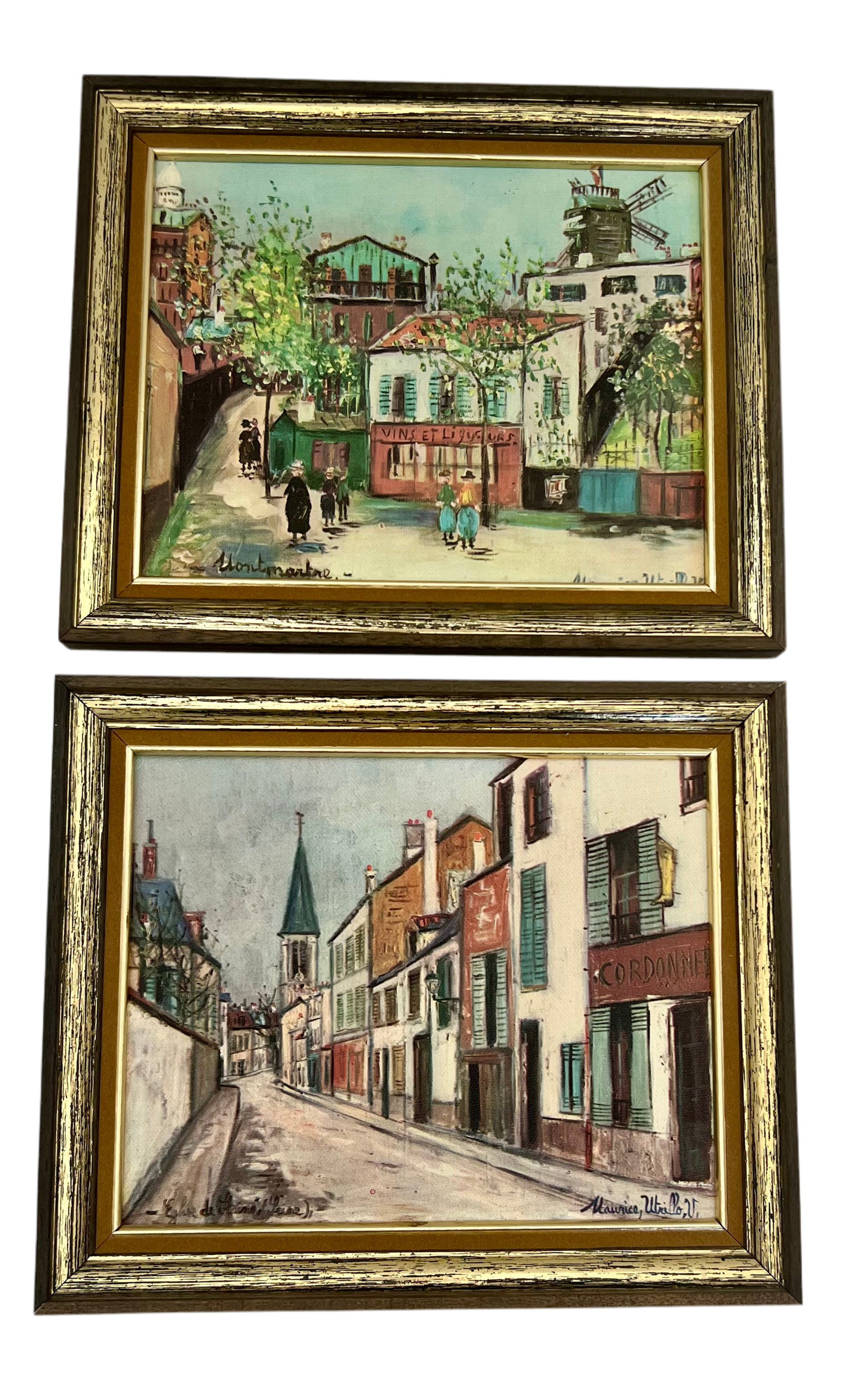 A charming pair of vintage framed prints after renowned French artist Maurice Utrillo (1883–1955), celebrated for his atmospheric street scenes of Montmartre, Paris.