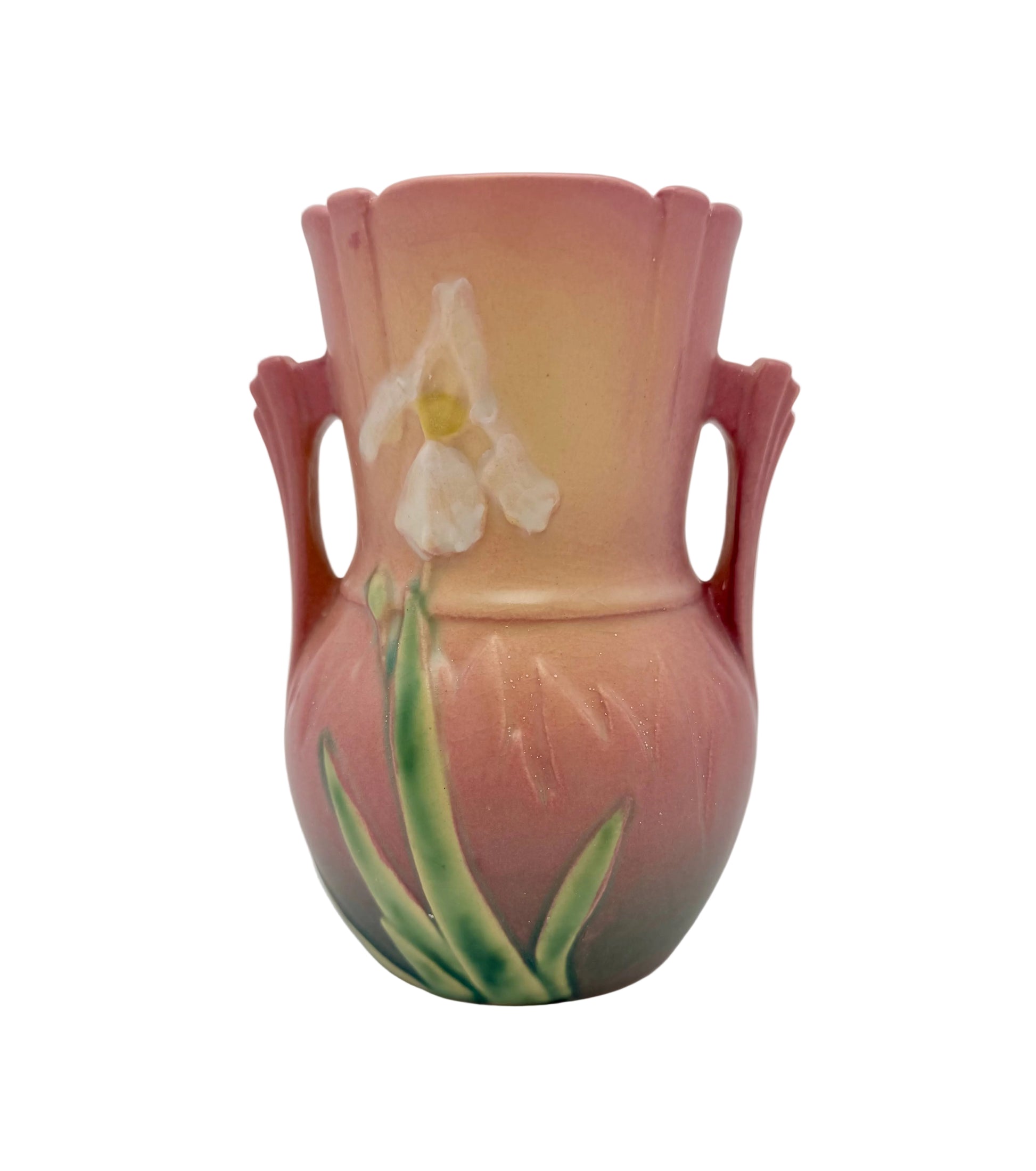 ROSEVILLE POTTERY WHITE ROSE VASE – PINK MATTE ART POTTERY, 1940s