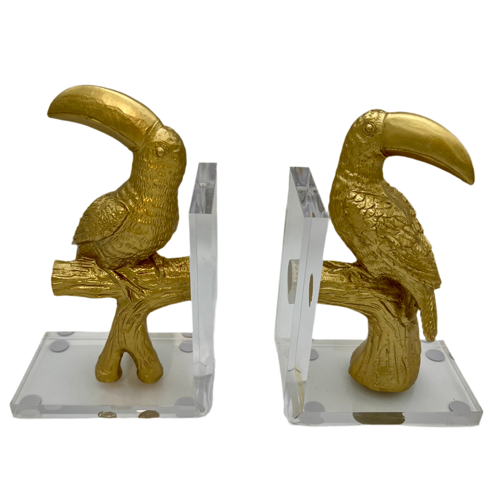 VINTAGE 1980S LUCITE GOLD TOUCAN BOOKENDS