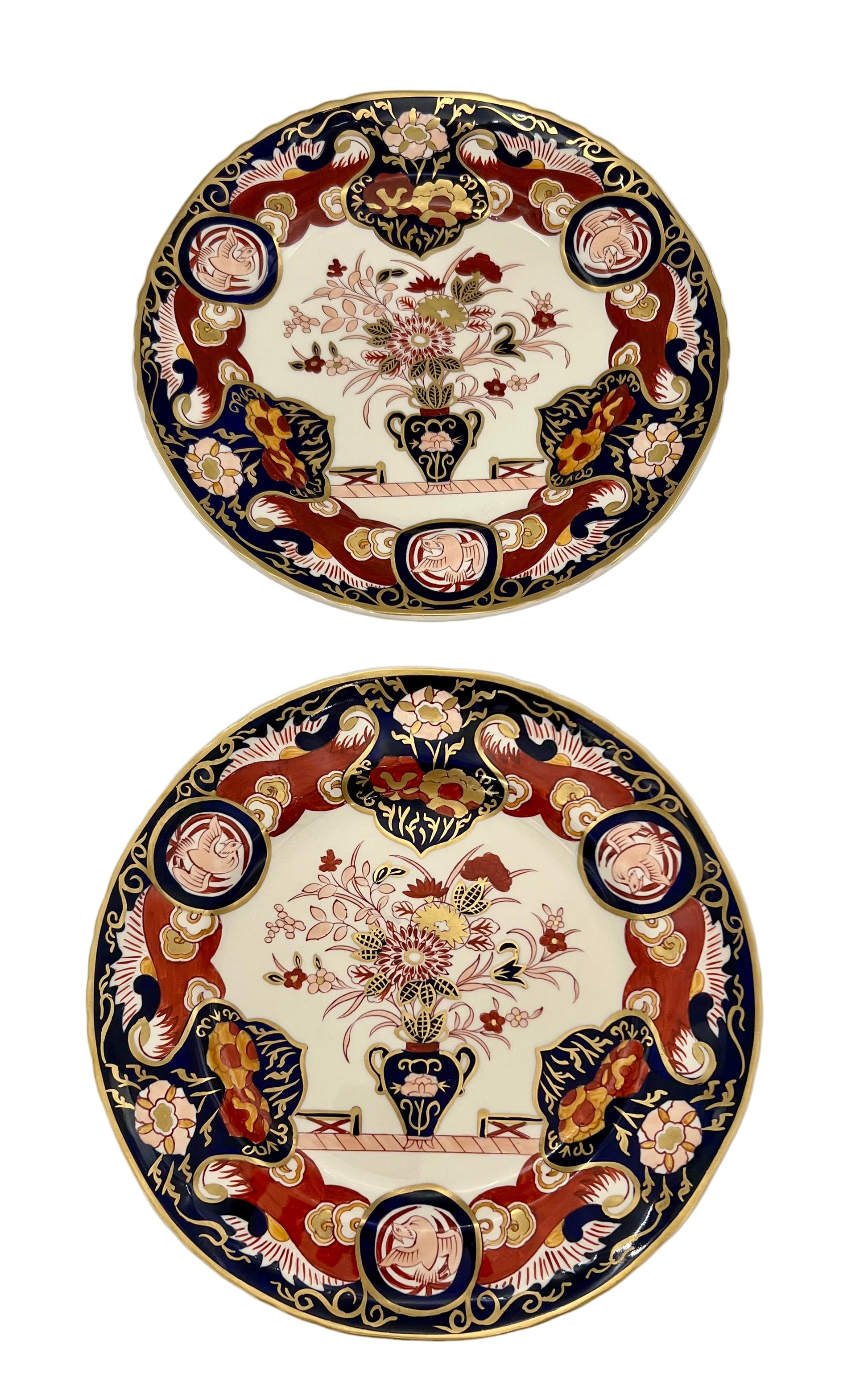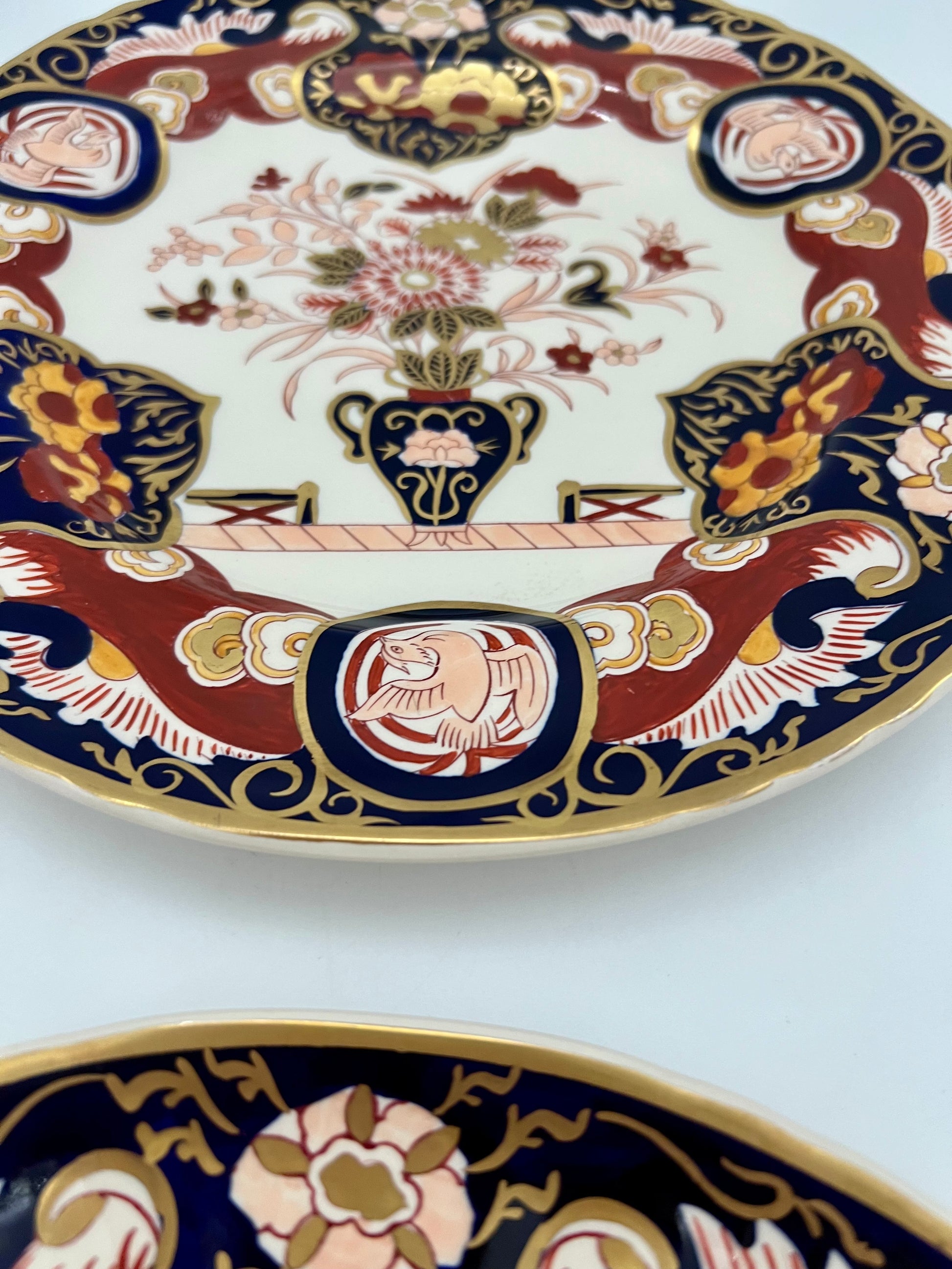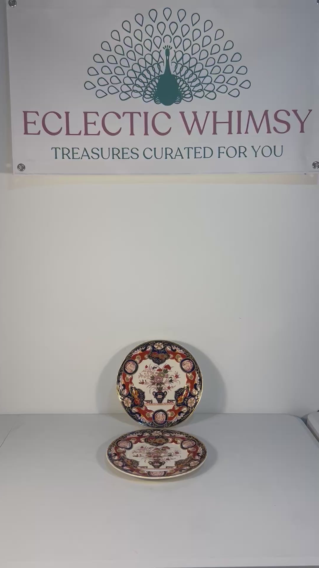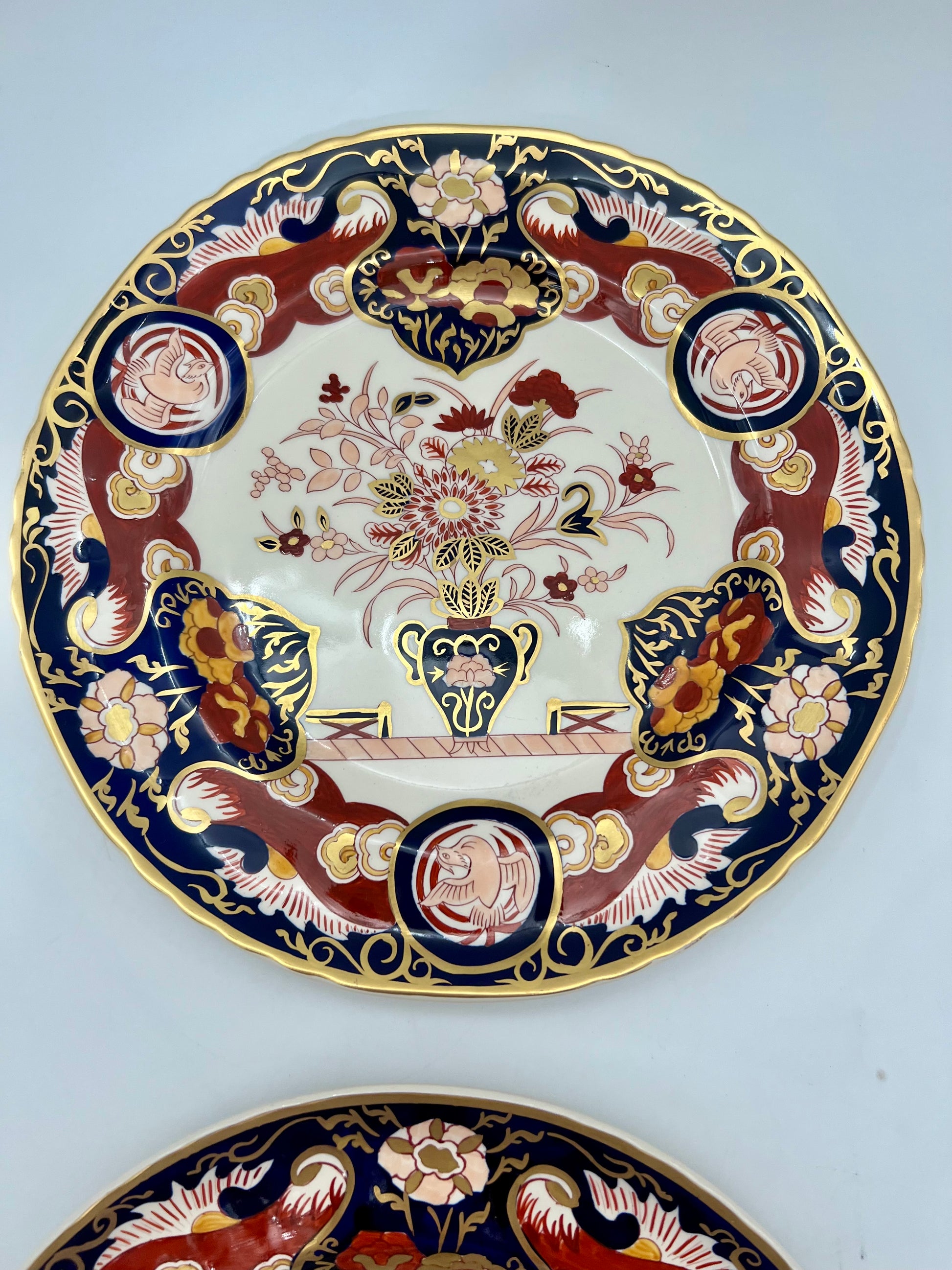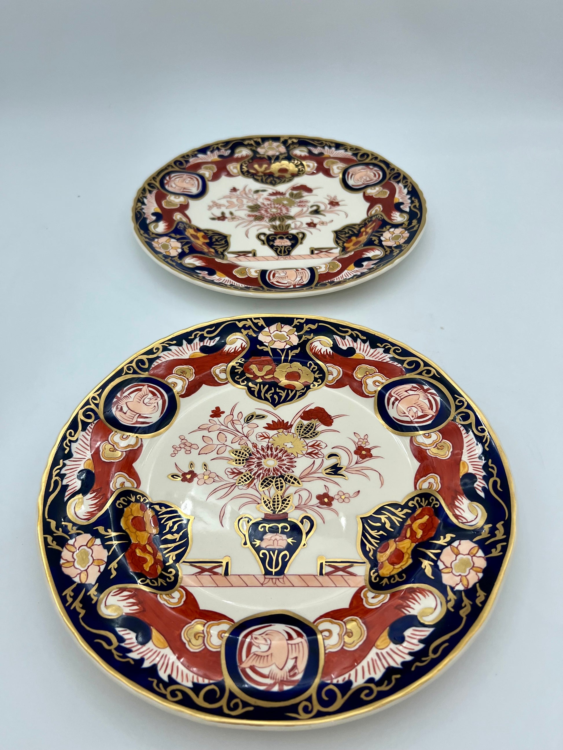 VINTAGE ENGLAND MASON'S IRONSTONE IMARI PATTERN DINNER PLATES, SET OF 2