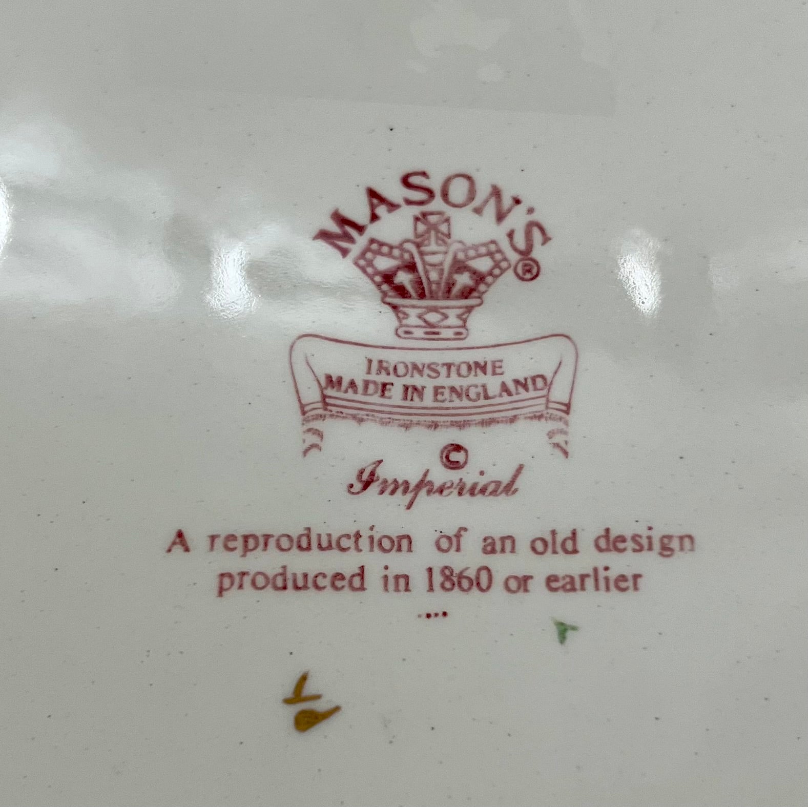 Introducing a stunning addition to your dinnerware collection - a pair of gorgeous Vintage Mason's Ironstone Imari Pattern Dinner Plates. Made in England from the finest Mason's Ironstone bone China, these plates feature a luxurious and intricate Imari pattern that is a reproduction of one of their early 1800's designs.  These plates will add an elegant touch to any table setting. Get your hands on this exclusive set of 2 plates today.
