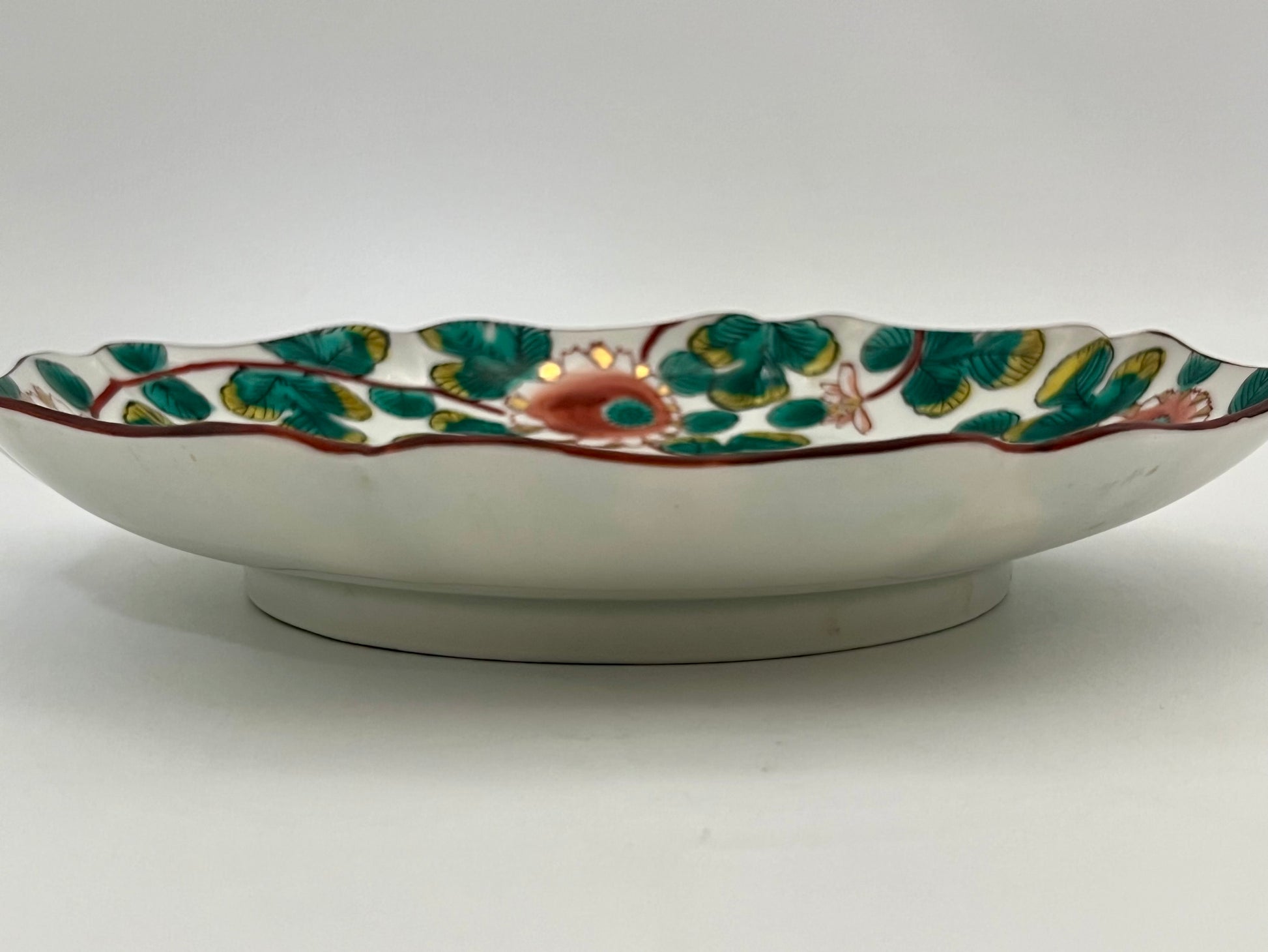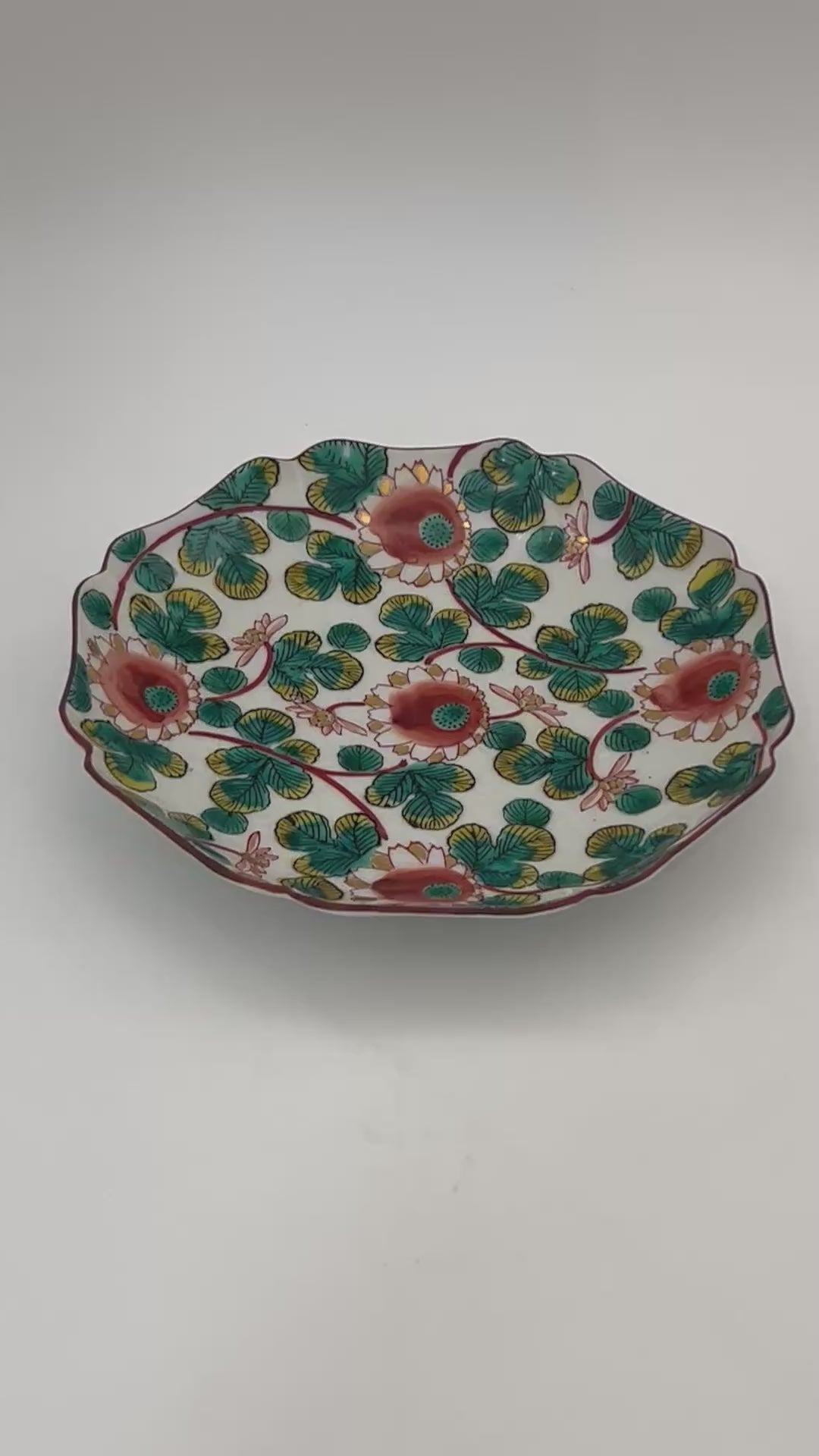 Add some vintage flair to your decor with this Asian-inspired plate from Fitz and Floyd! Featuring a stunning floral pattern of stylized chrysanthemums and leaves, this octagon-shaped plate with a scalloped edge reflects the playful design Asian inspired aesthetic of the 1970s. Its small size makes it perfect for adding a touch of fun to any coffee table, shelf, or dresser.  The plate still has to FF sticker on the back.  So much fun!