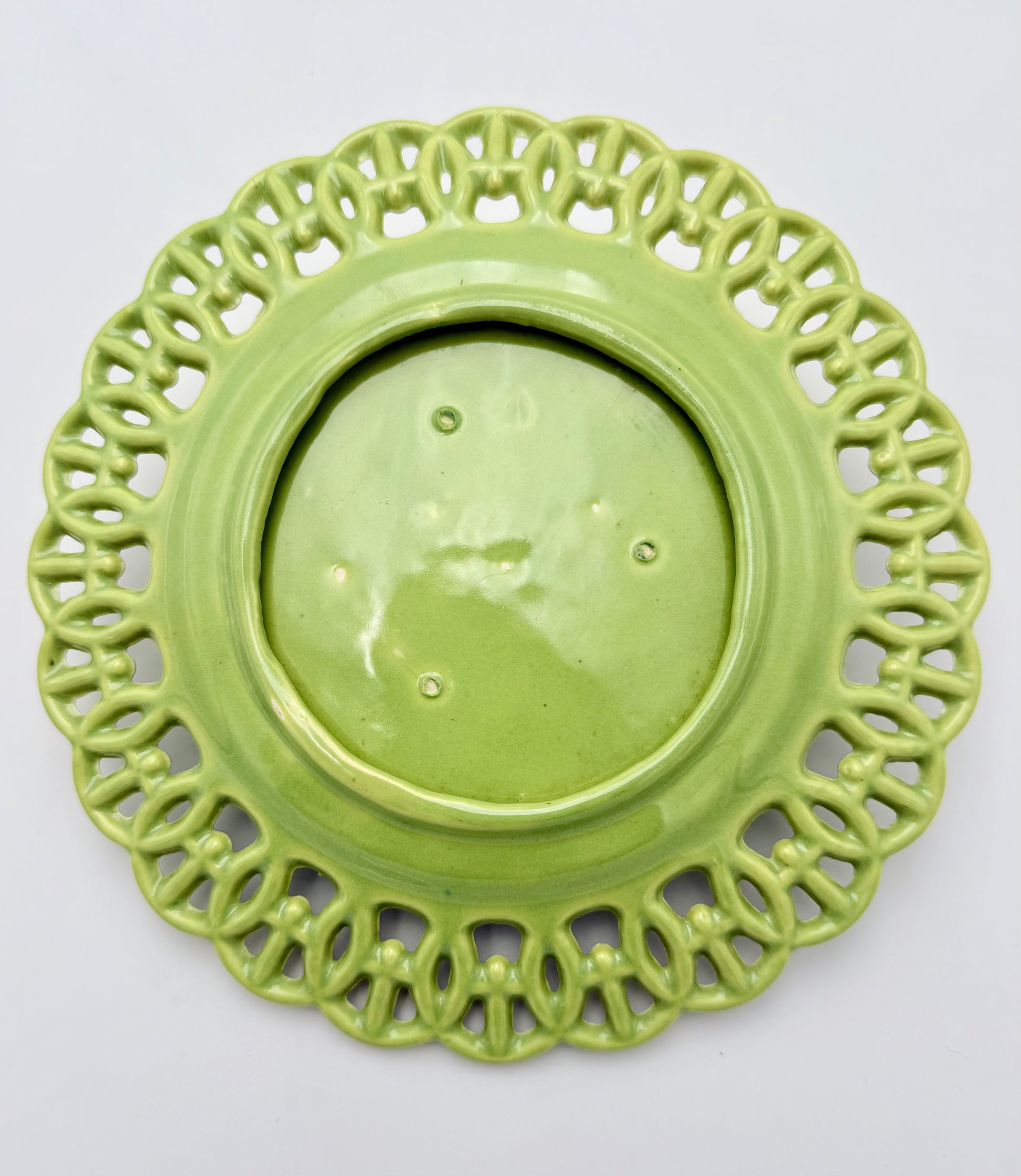 The pierced rim adds elegance and visual texture, and the bold color palette makes this a standout accent for a gallery wall, cottage-chic kitchen, or eclectic home display.